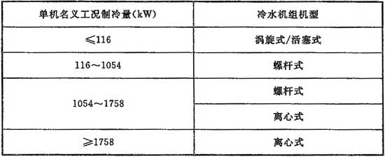 9.2.2 選擇水冷電動壓縮式冷水機組機型時,宜按表9.2.2內(nèi)的制冷量范圍,經(jīng)過性能價格綜合比較后確定。