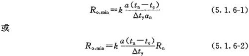 5.1.6 除外窗、陽臺門和天窗外,設(shè)置全面供暖的建筑物,其圍護(hù)結(jié)構(gòu)的最小傳熱阻不得小于按下列公式計(jì)算所得值: