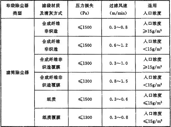 3 過濾風速和除塵效率、濾袋壽命、清灰效果、除塵器壓力損失關(guān)系密切,一般來說,較小的過濾風速會提高除塵效率、延長濾袋壽命,改善清灰效果。但過小的過濾風速會造成設(shè)備型號偏大,設(shè)備初投資增加。國家現(xiàn)行的幾項除塵器設(shè)備標準都對除塵器過濾風速、壓力損失等作了規(guī)定,總結(jié)為表3,根據(jù)表3總結(jié)為本條第3款。